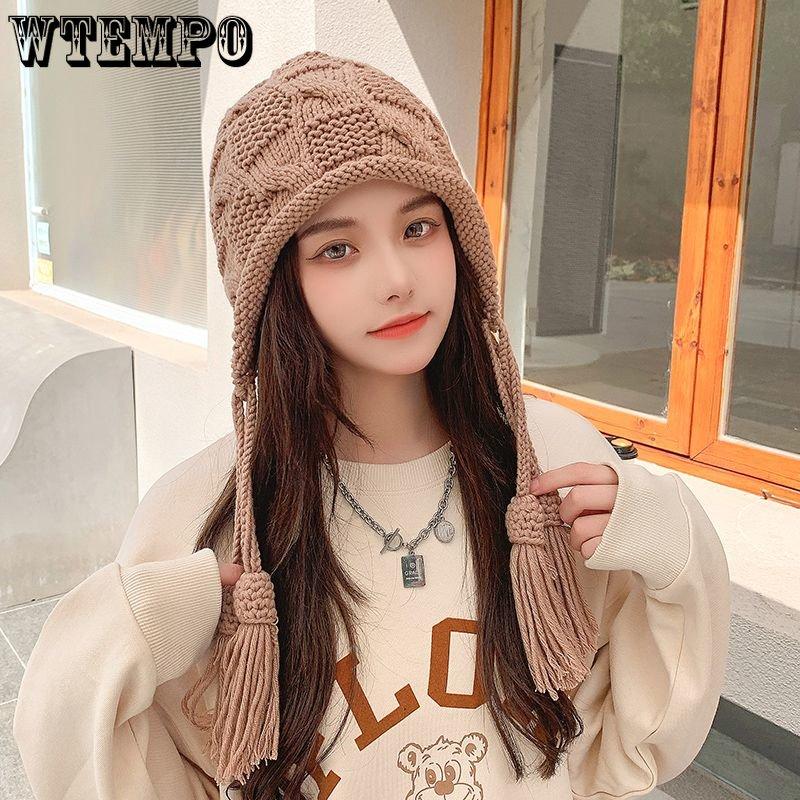Ear Protection Wool Hat Female Versatile Knitting Tassel Plait Hat Autumn Winter Ladies Tassels Hat