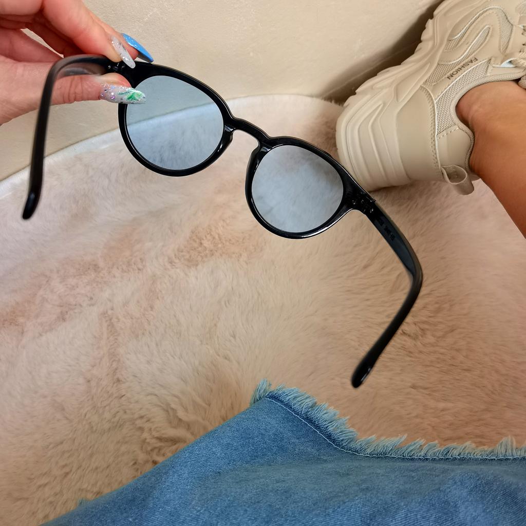COOL SUNGLASSES 😎 FRAME COLOR BLACK LENS COLOR TRANSPARENT INDIGO I'm very glad that I bought them 💘 Lightweight, high-quality plastic and fixings. Very comfortable sitting. For such a price, it's simply a gift of fate! PAIRS PERFECTLY WITH DENIM GORGEOUS, I RECOMMEND 💯👍