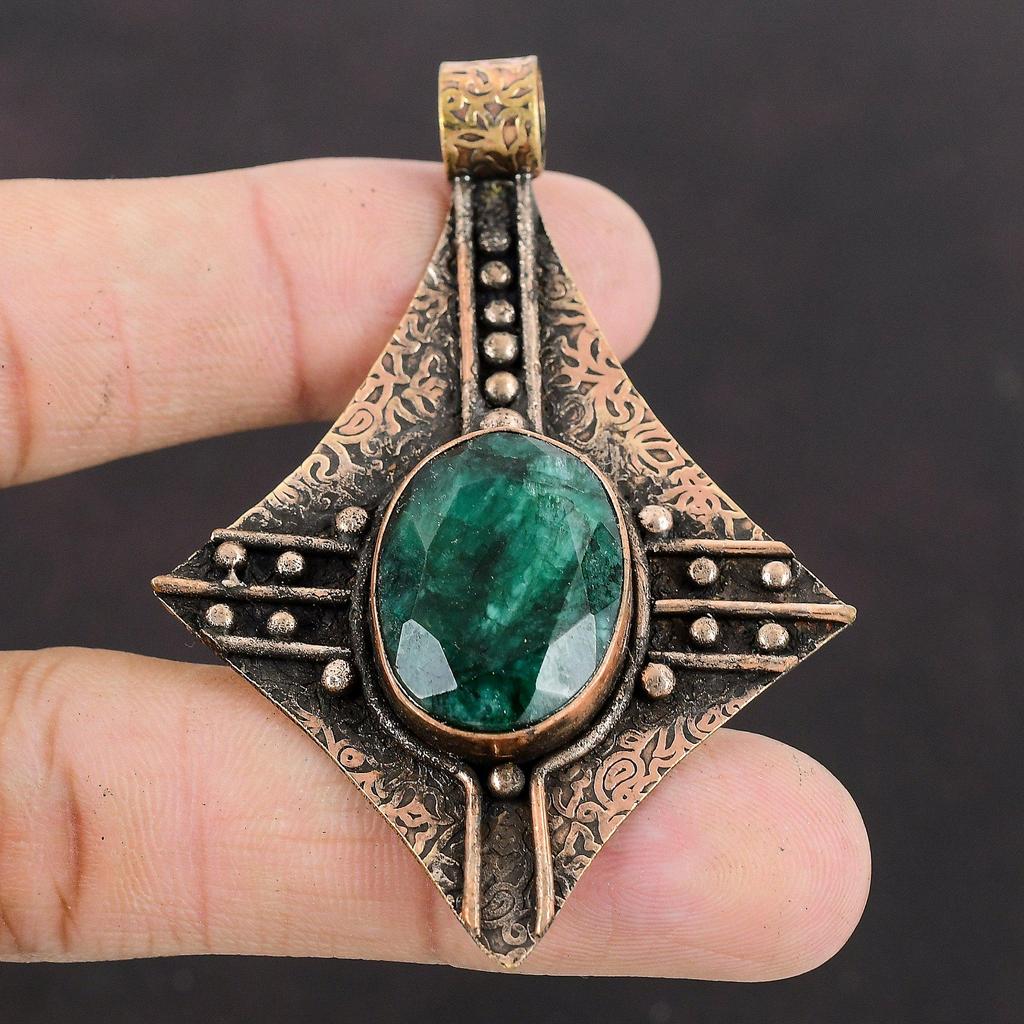 Faceted Zambian Emerald Pendant Copper Pendant Very Pretty Gemstone Pendant Copper Jewelry For Gift Handmade Pendant Zambian Emerald Jewelry
