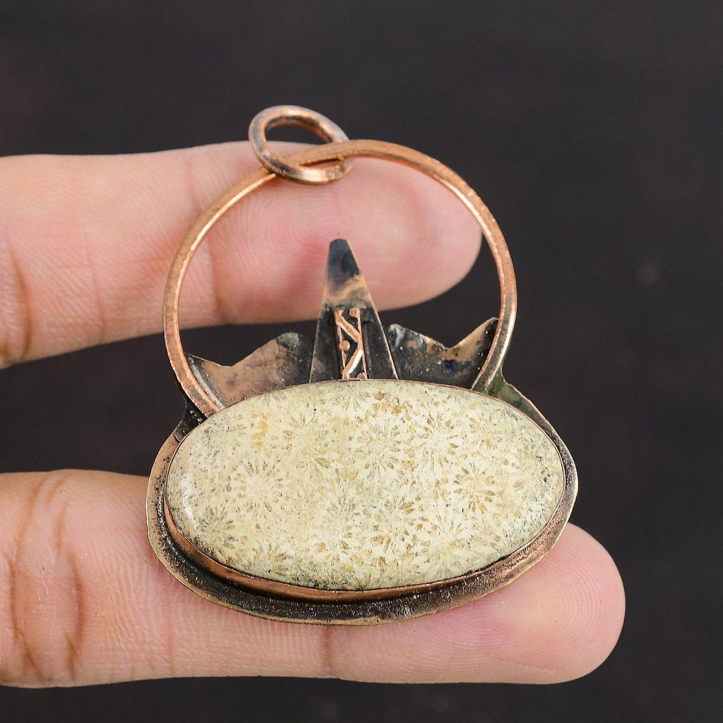 Fossil Coral Pendant Copper Pendant Gemstone Pendant Handmade Jewelry Latest Design Pendant Copper Jewelry Gift For Him Fossil Coral Jewelry