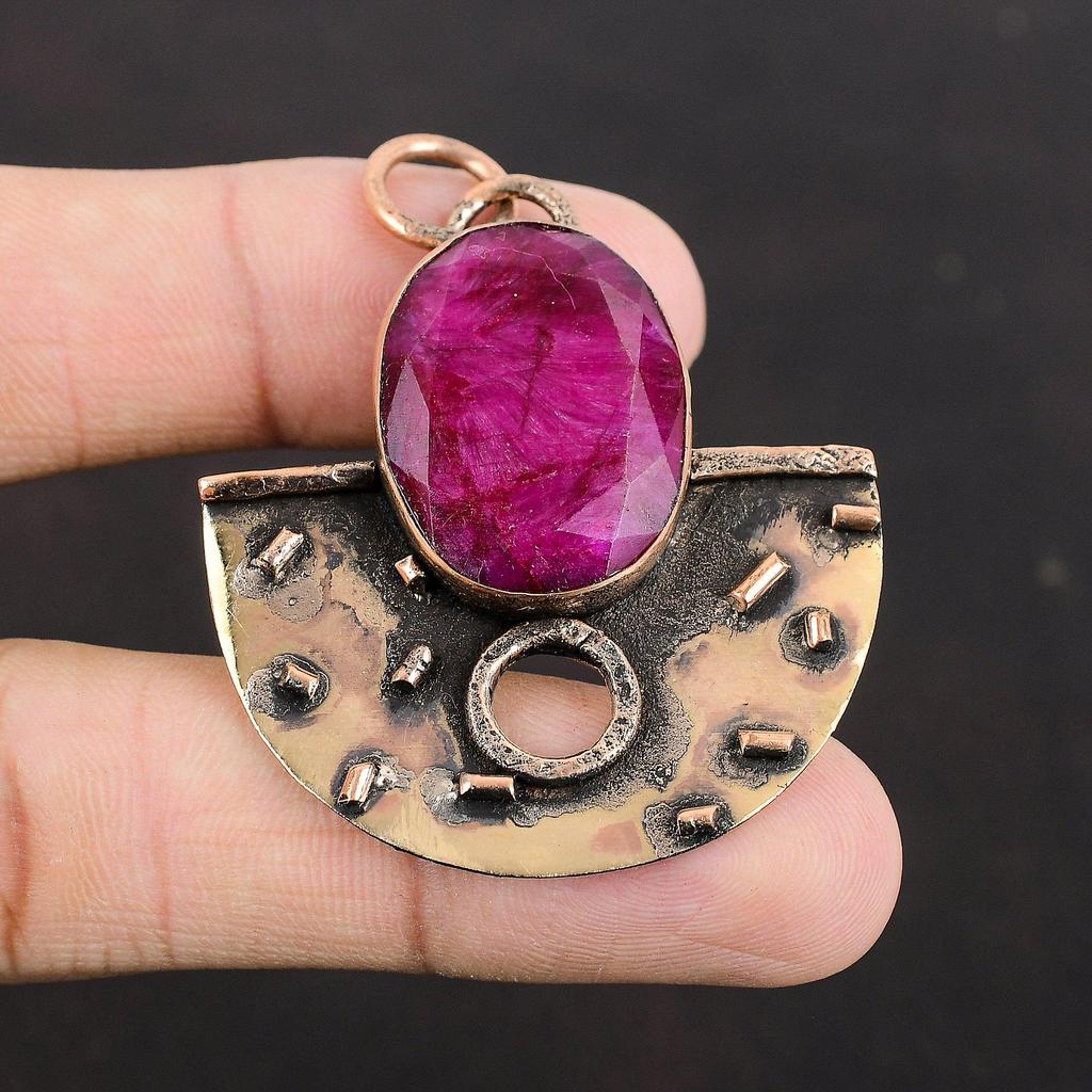 Faceted Kashmir Ruby Pendant Copper Pendant Gemstone Jewelry Statement Pendant Handmade Jewelry Pendant For Women Copper Jewelry For Gifts