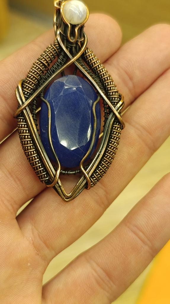 Faceted Blue Sapphire Pendant Copper Wire Wrapped Jewelry Gemstone Pendant Rainbow Moonstone Copper Pendant Handmade Jewelry Engagement Gift