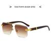 Half Frame Glasses, Square Cut Edge , Marble Grain Wood Grain Mirror Legs, Sun Protection