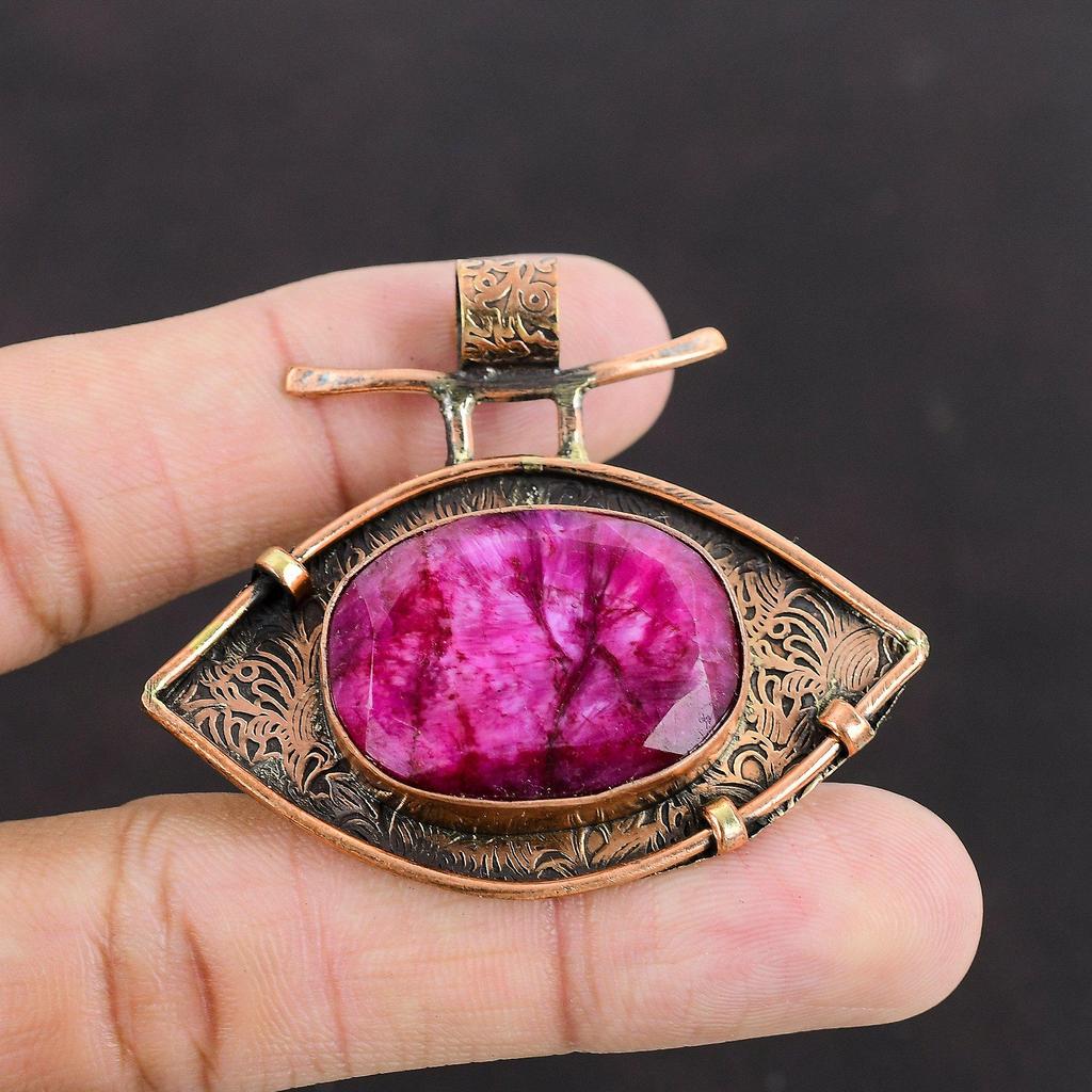 Faceted Kashmir Ruby Pendant Copper Pendant Gemstone Jewelry Birthstone Pendant Handmade Jewelry Pendant For Women Oxidized Copper Jewelry