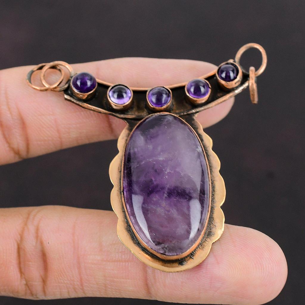Star Amethyst Pendant African Amethyst Pendant Handmade Copper Pendant Gemstone Pendant Copper Jewelry Women's Special Gift Stylish Pendant