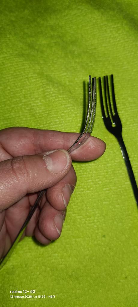 The fork is simply ridiculous, crude. In the picture it seemed that the metal would be thicker... But! I was wrong, everything as always : the cutlery is not very good... The tines are blunt, the handle bends. Such(