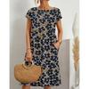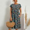 Fashion Women's Loose Fitting Cotton Linen Sleeveless Round Neck Floral Printed Summer Dress