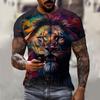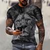 Summer Men's Vintage T Shirt Lion Graphics 3D Print Fashion Tiger Short Sleeve Men's Clothing Oversized Wolf T-shirts Streetwear