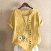 Women's Fashion Round Neck Short Sleeve T-shirt Casual Cotton Linen Graphic Shirt Chrysanthemum Prined Summer Blouse Tops Plus Size
