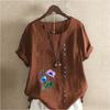Women's Fashion Round Neck Short Sleeve T-shirt Casual Cotton Linen Graphic Shirt Leisure Loose Flowers Prined Summer Blouse Tops