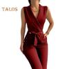 Embrace the sleek design of this sleeveless V-neck jumpsuit, exuding a slim and fashionable look that is perfect for casual outings, cocktail parties, weddings, or even date nights.