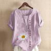 Women's Fashion Round Neck Short Sleeve T-shirt Casual Cotton Linen Graphic Shirt Leisure Loose Flower Prined Summer Blouse Tops