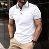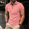 Summer Men's Striped Collar Polos Casual Tops Sports Solid Color Short Sleeve Polo Shirt