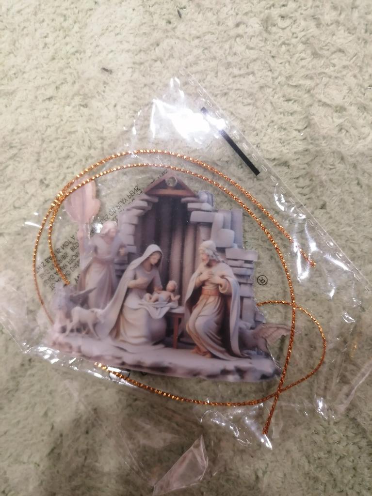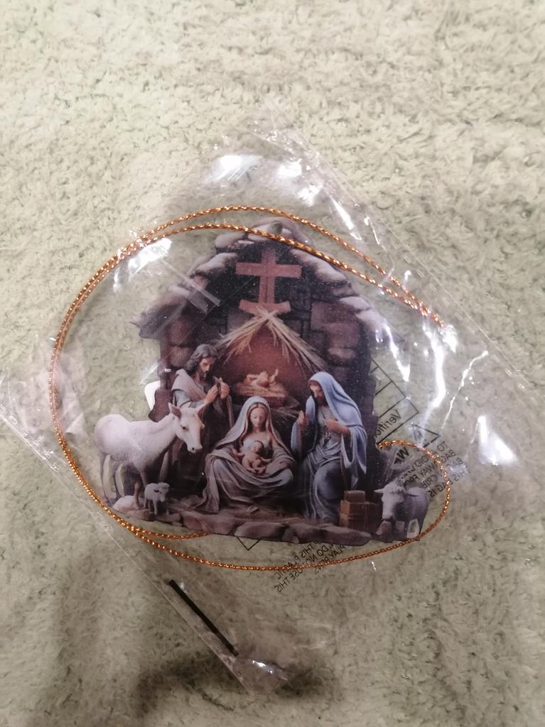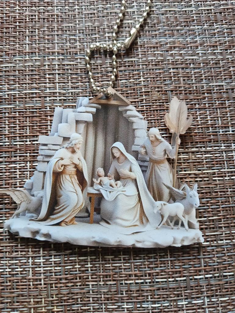 Christmas Pendant Ornament Jesus Family Prayer Scene Pendant Bright Colored Religious Symbol Pendant for Home Car
