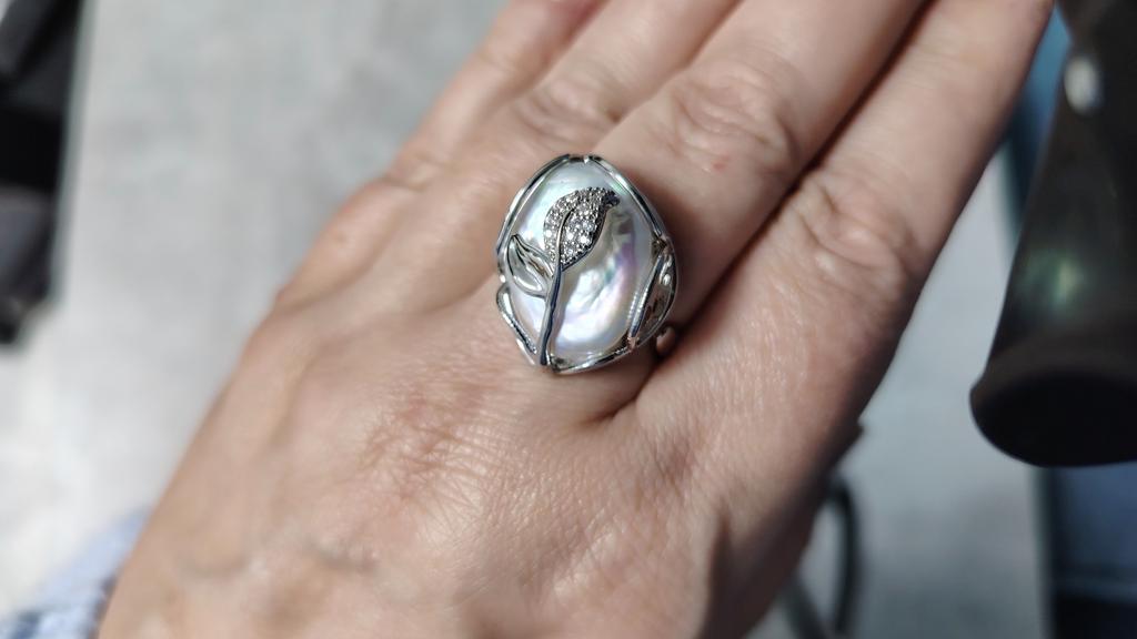 The ring is beautiful, of a very unusual shape, it's good that the size is adjustable! The ring is for those who love costume jewelry and often change it to match their clothes and events. The pearls are natural with a beautiful setting! Thank you!