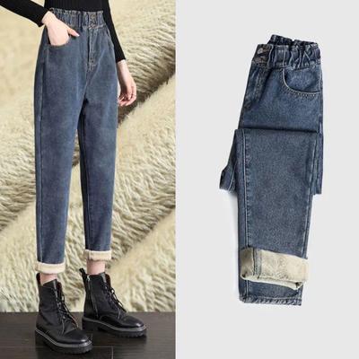 Women Winter Plush Baggy Ankle-length Jeans Velvet Lined High Waist Harem Denim Pants Vaqueros Pantalones Warm Thick Jeans