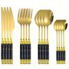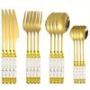 16pc Stainless Steel Long Ceramic Handle Tableware Set, Steak Knife, Fork, Spoon, Western Tableware Set, Dinnerware Accessories
