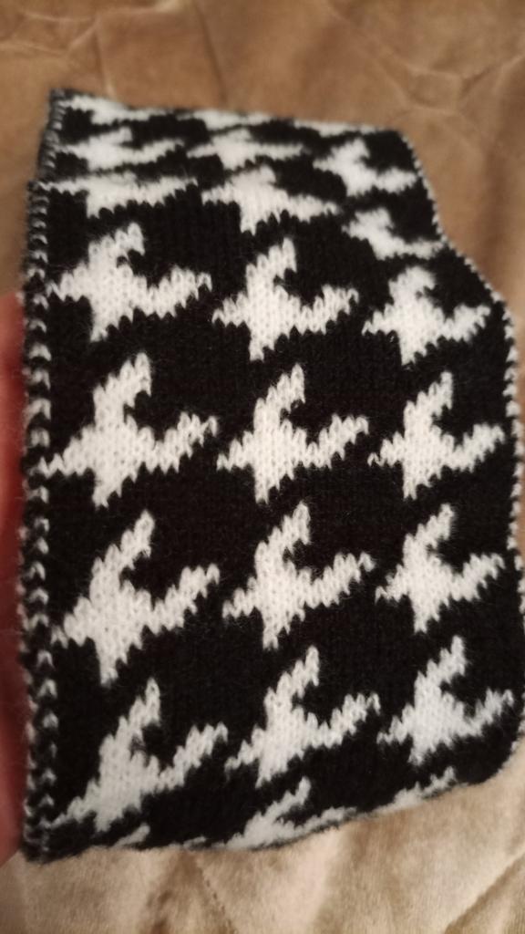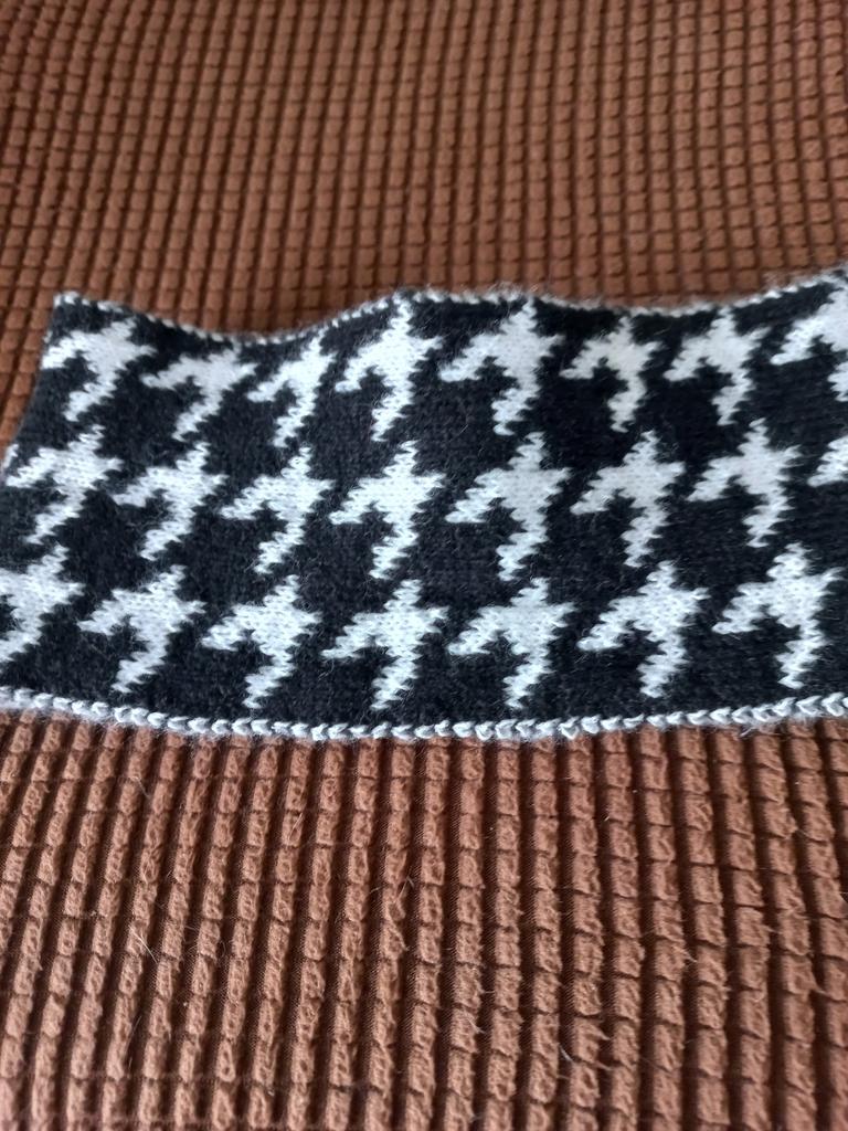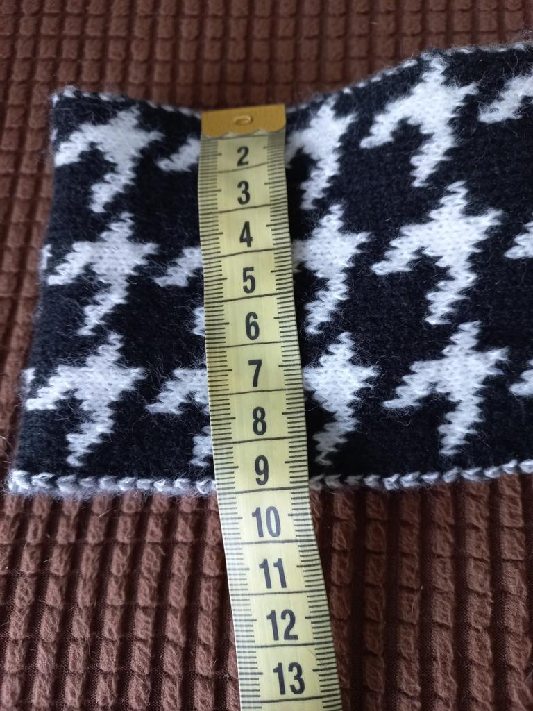 I have size 56. It's too small for me, the pattern is very stretched, as if the houndstooth pattern was smeared or faded. In general, it's for a child's head.