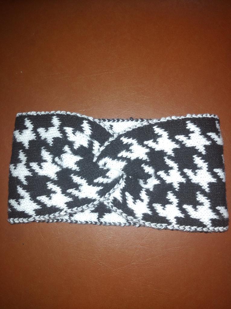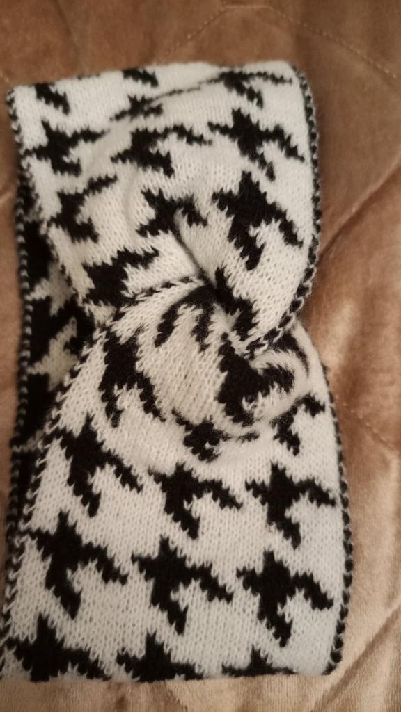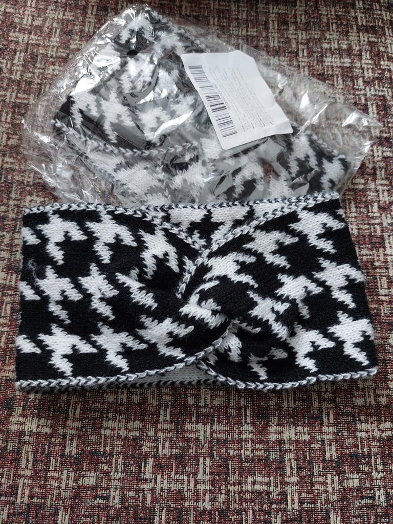 Vintage Elegant Houndstooth Knit Wide Headband Chic Tie Sports Warm Headband for Women, Cross Knot Hair Accessory