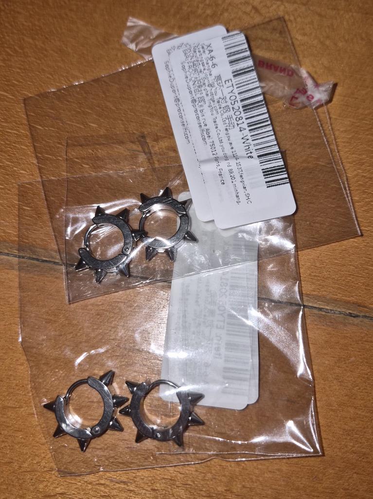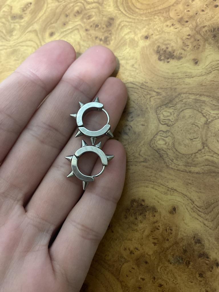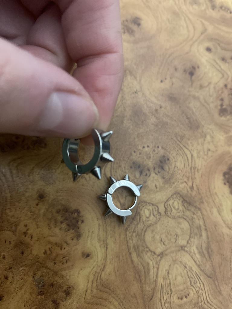 Very cute little gangsters. The earrings have 6 spikes, not 4 as in the photo, which is very pleasing. Well made, they fasten securely.