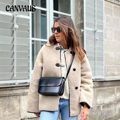 Women's Fashion Winter Coats Double Sided Plush Water Ripple Button Cardigan Pocket Lapel Casual Tops Jacket for Women