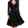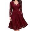 YYFS Women's Fashion Fall Winter Solid Color Lace Print Long Sleeve V-Neck Middle Waistline Casual Dresses