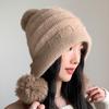 Cute Three-ball Wool Hat Women's Winter Velvet Bag Hat Fashion Ear Protection Knitted Hat