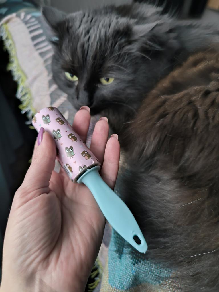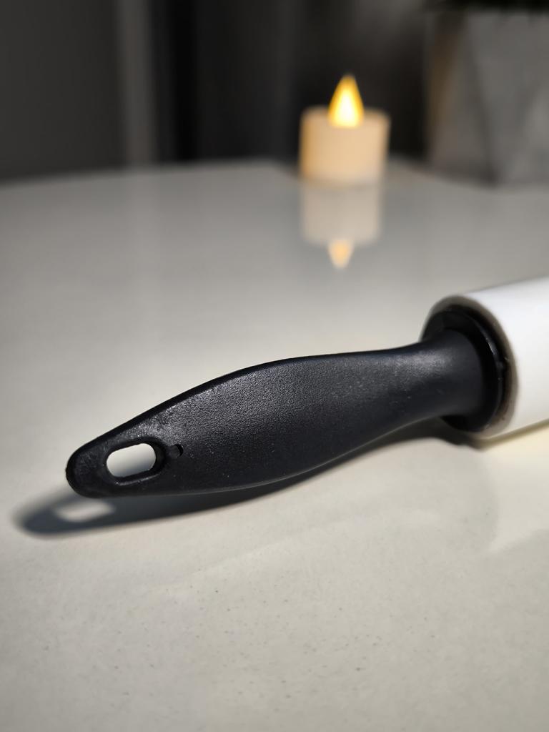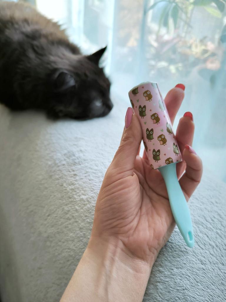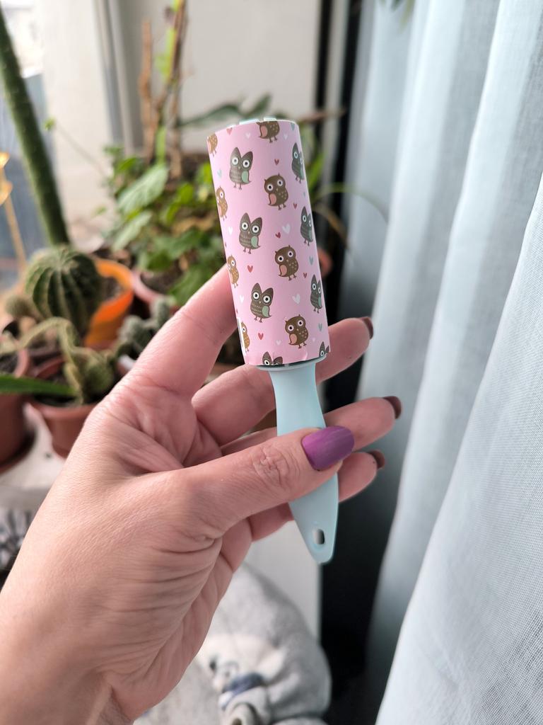 The hair roller is a convenient accessory for quickly cleaning clothes, furniture and other surfaces from pet hair, dust and small particles.๐ธ The roller has replaceable sticky layers that easily remove hair and dirt without damaging the fabric.โจ Sticky sheets are used sparingly and are easily removed, revealing a new clean layer.. Its compact size allows you to carry it with you or store it in your bag for emergency cleaning, making it an indispensable tool for pet owners and for maintaining a neat appearance.๐