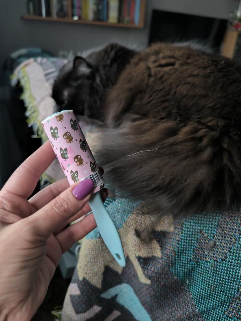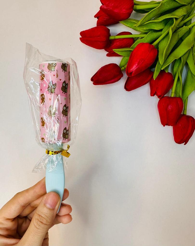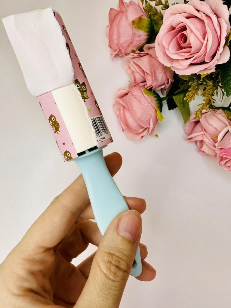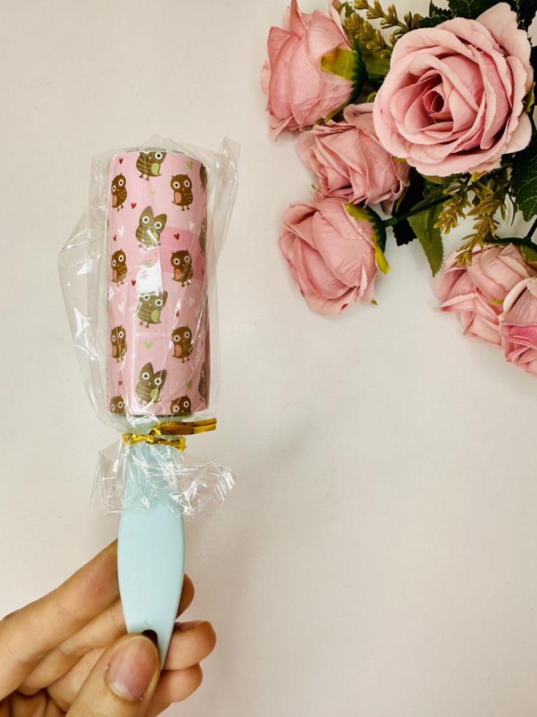 The hair roller is a convenient accessory for quickly cleaning clothes, furniture and other surfaces from pet hair, dust and small particles.๐ธ The roller has replaceable sticky layers that easily remove hair and dirt without damaging the fabric.โจ Sticky sheets are used sparingly and are easily removed, revealing a new clean layer.. Its compact size allows you to carry it with you or store it in your bag for emergency cleaning, making it an indispensable tool for pet owners and for maintaining a neat appearance.๐