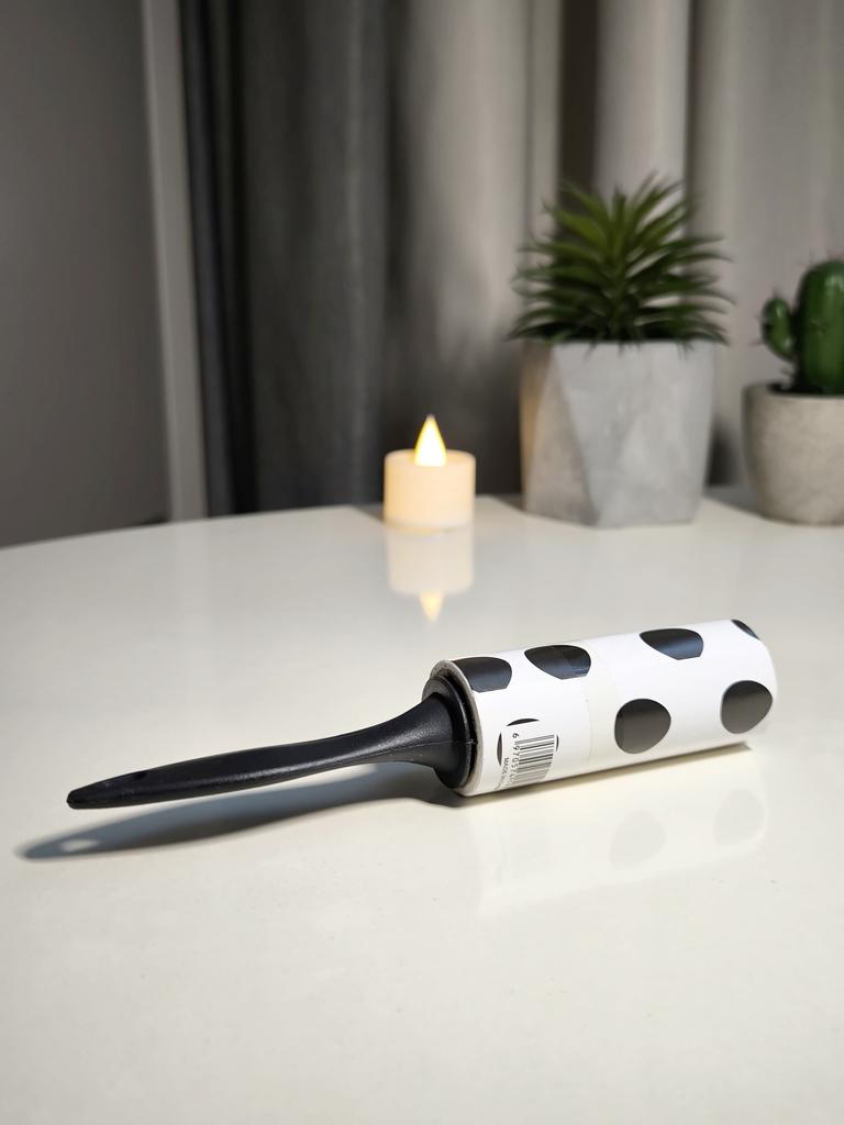 A hair roller is a convenient accessory for quickly cleaning clothes, furniture and other surfaces from pet hair, dust and small particles.. The roller has replaceable sticky layers that easily remove hair and dirt without damaging the fabric.. Sticky sheets are used sparingly and are easily removed, revealing a new clean layer.. Its compact size allows you to carry it with you or store it in your bag for emergency cleaning, making it an indispensable tool for pet owners and for maintaining a neat appearance.