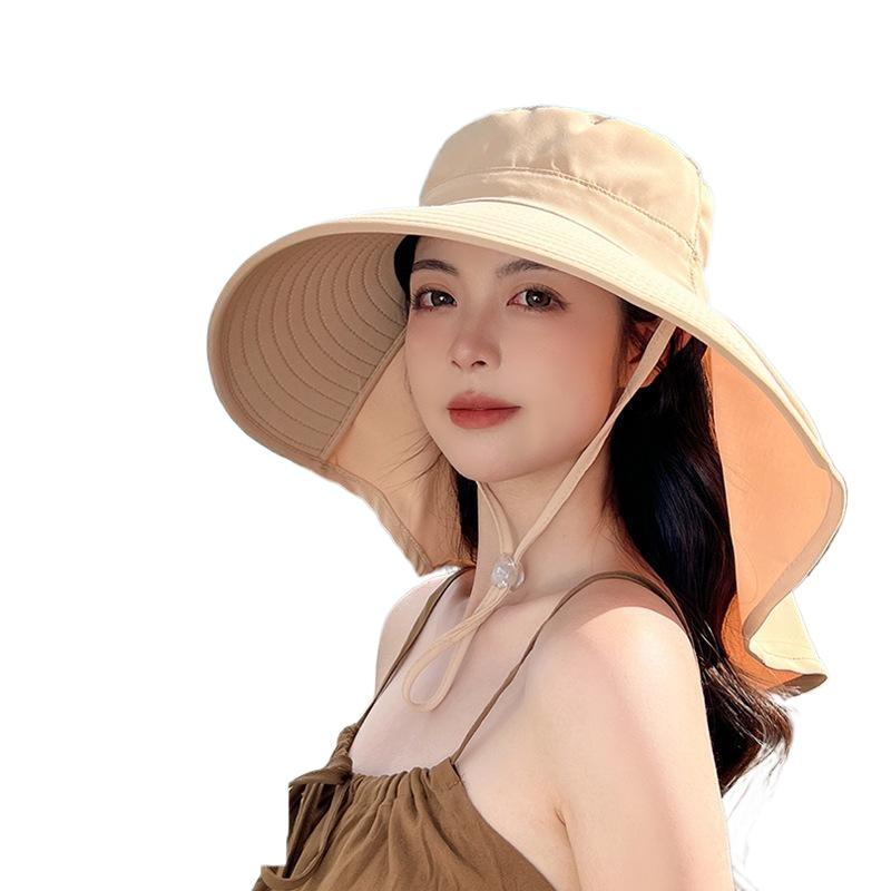 Summer Outdoor Sunscreen Sun Hat with Ponytail Hole Hat Female Korean Version Fashion Big Eaves Shawl Bucket Hat Tide