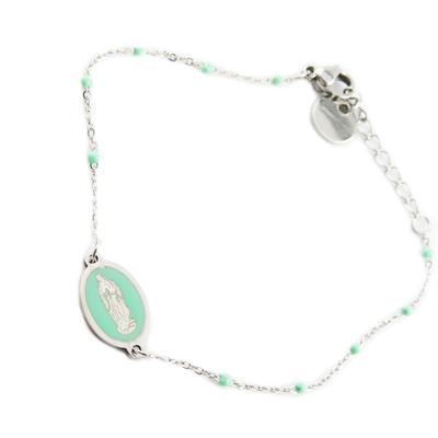 [Q8913] - Silver Bracelet 'Virgin Mary' Silver Green (rhodium-plated) - 10x7 Mm