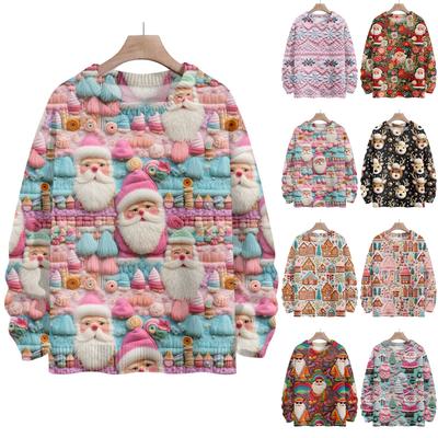 Women's Fashion Round Neck Pullover Top Long Sleeve Tee Christmas Printed Sweatshirt