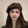 Vintage Plaid Beret Hat for Autumn Winter Casual Artist Hat for Women Simple Woolen Beret Hat