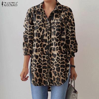 ZANZEA Women Vintage V Neck Long Sleeve Leopard Print Shirts