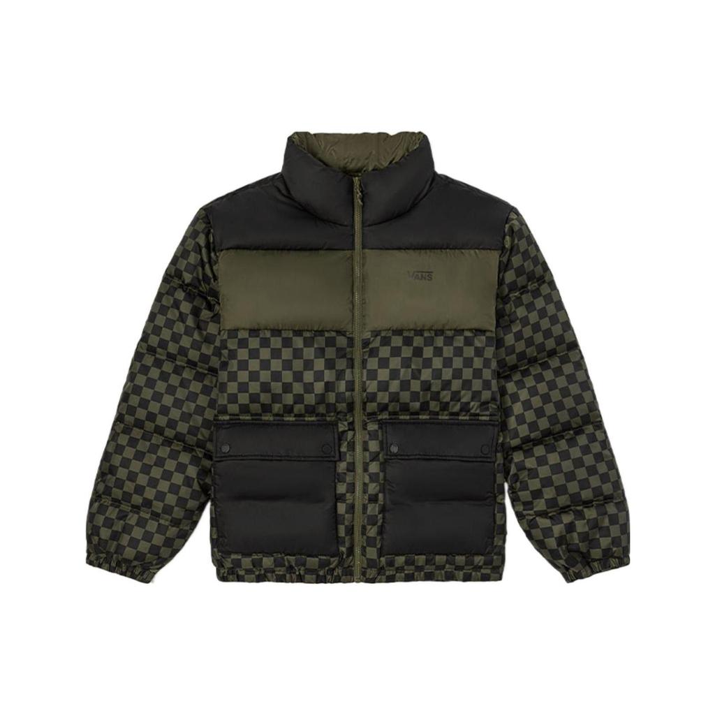 Vans FW22 Logo Print Grid Oversized Pocket Zipper Down Jacket Unisex Outerwear Green Checkered VN00090SBSZ