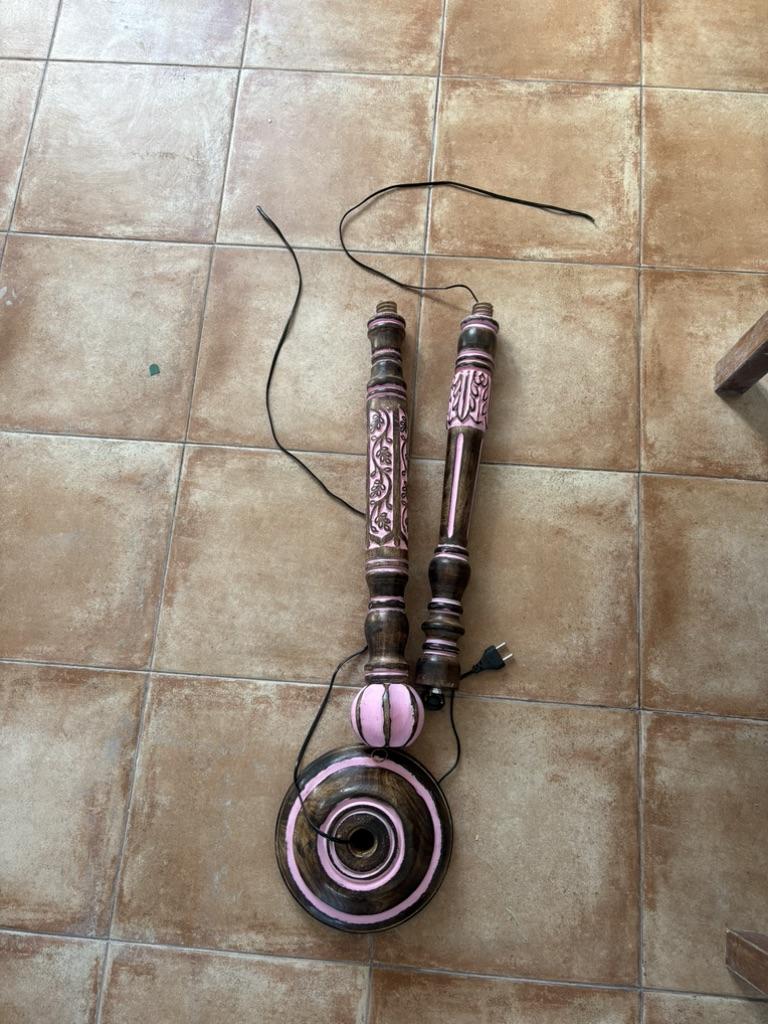 Natural Wood Tripod Floor Lamp with Engraved Flower & Leaf Design with Yarn Shade-Industrial Lighting Fixture for Living Room ,Corners
