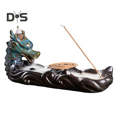 Ceramic Dragon Incense Burner Backflow Smoke Censer Holder Décor