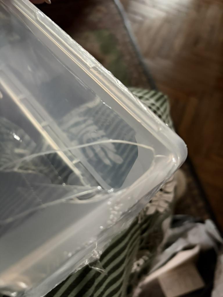 Bread storage container, very cool, spacious. But... It arrived with a defect, a crack on the lid. I contacted support, they returned half of the amount, namely 122 ₽, the container costs 244 ₽. I took it with points.