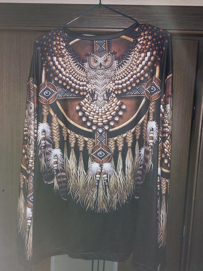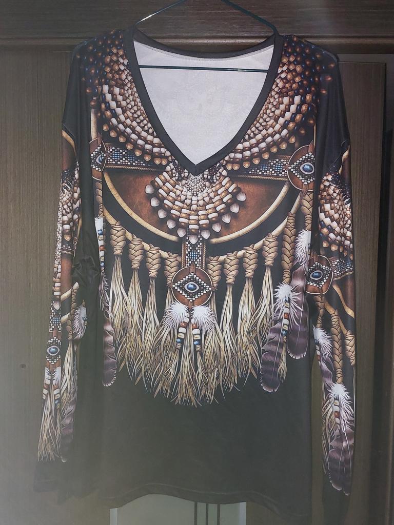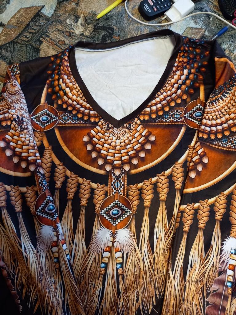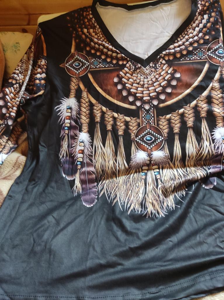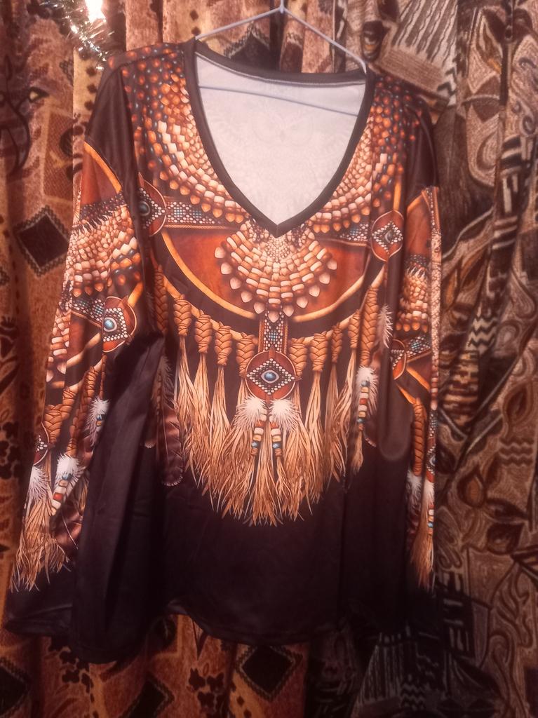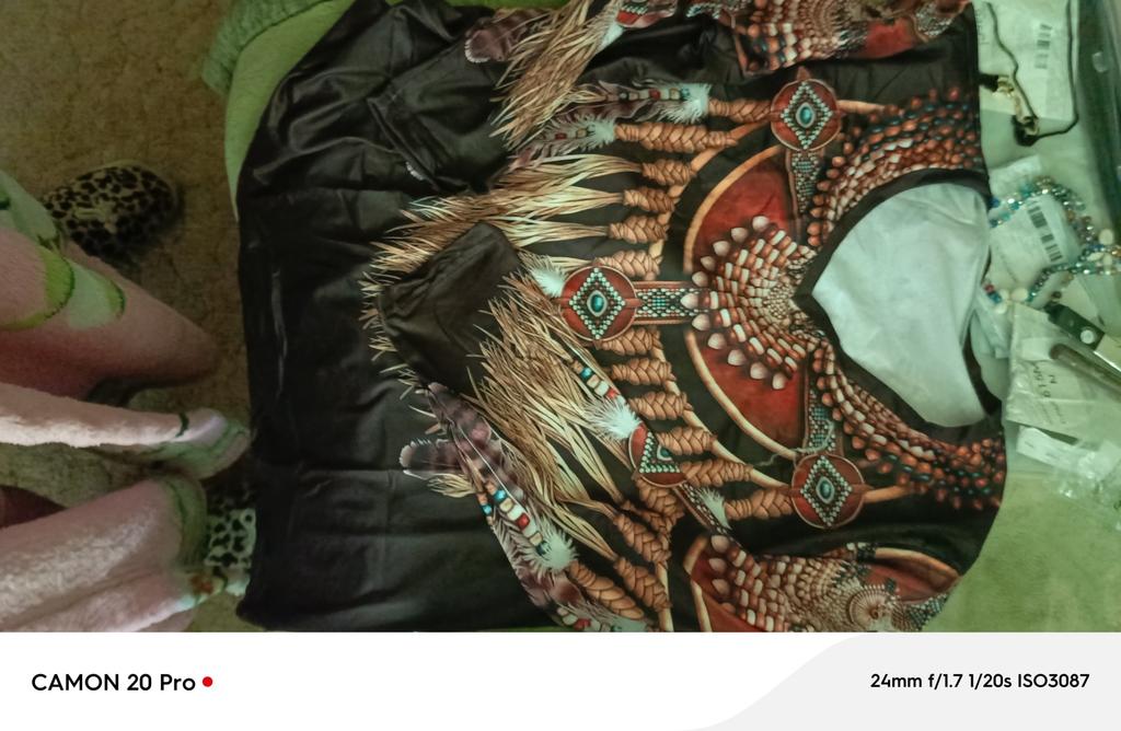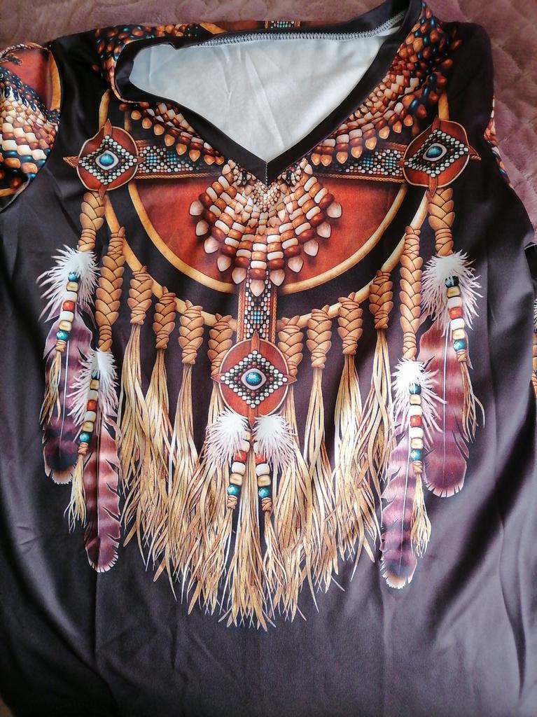 Original blouse like the Indians. The print is very bright on a dark background, the fabric density is thin. You can wear it not only to a party, to various events, but also for a walk in the park, you will stand out from everyone, that's obvious! Item for youth, and for shock value! LIKE!