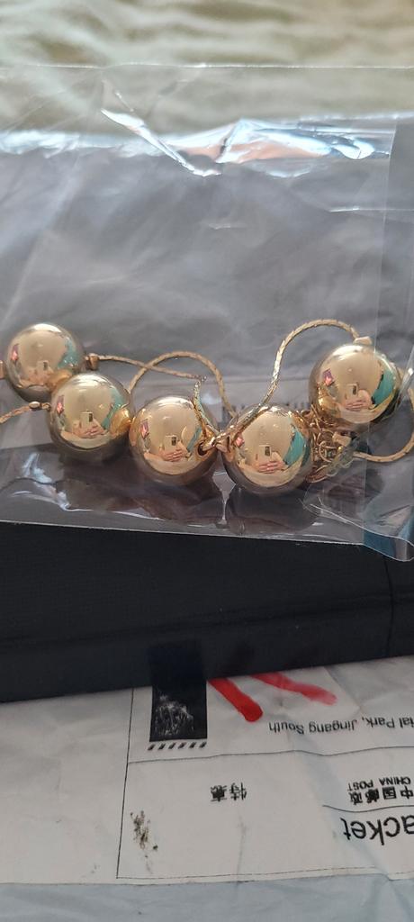 The beads are even, smooth. The diameter is about 1 cm. The chain is smooth, thin. An elegant piece. The color matches the 585 gold standard. Effective and festive.