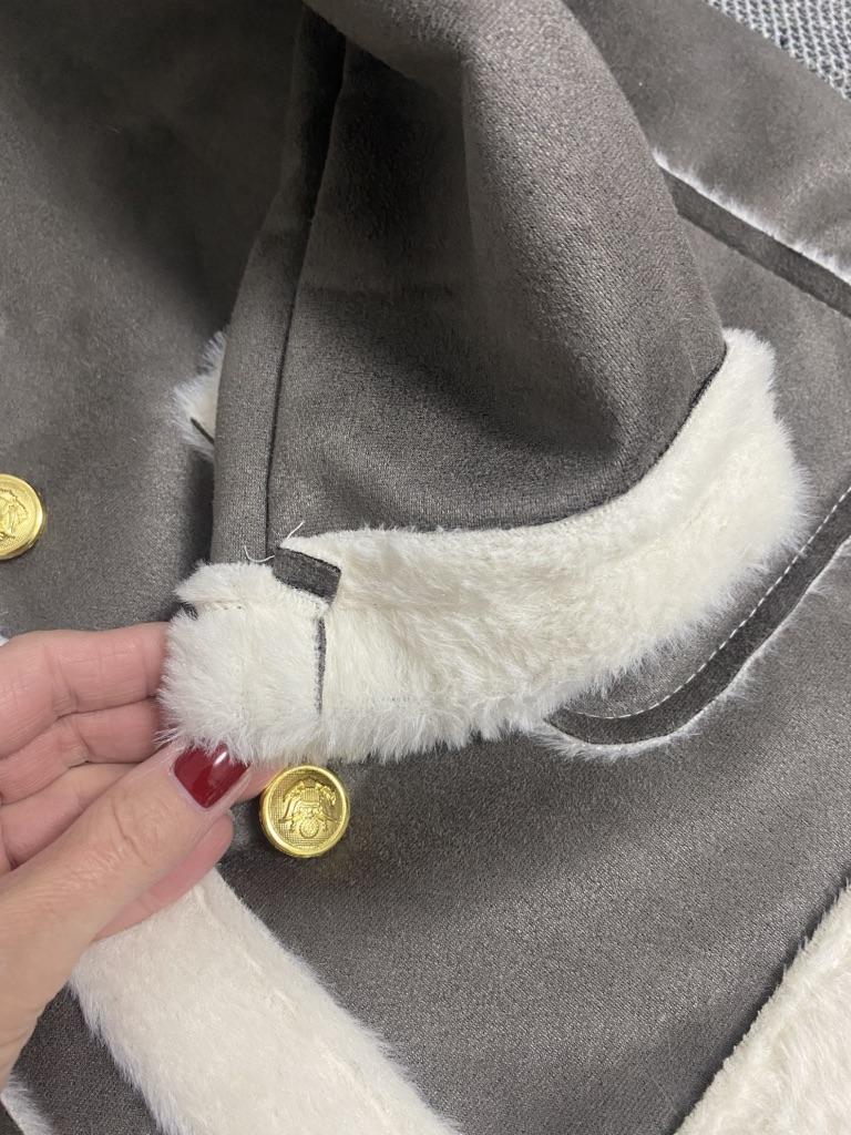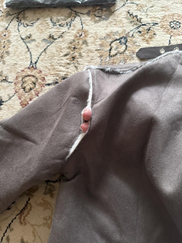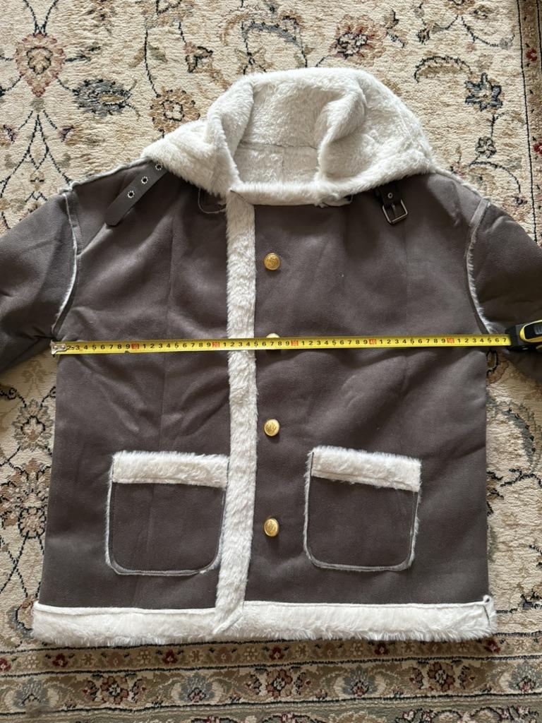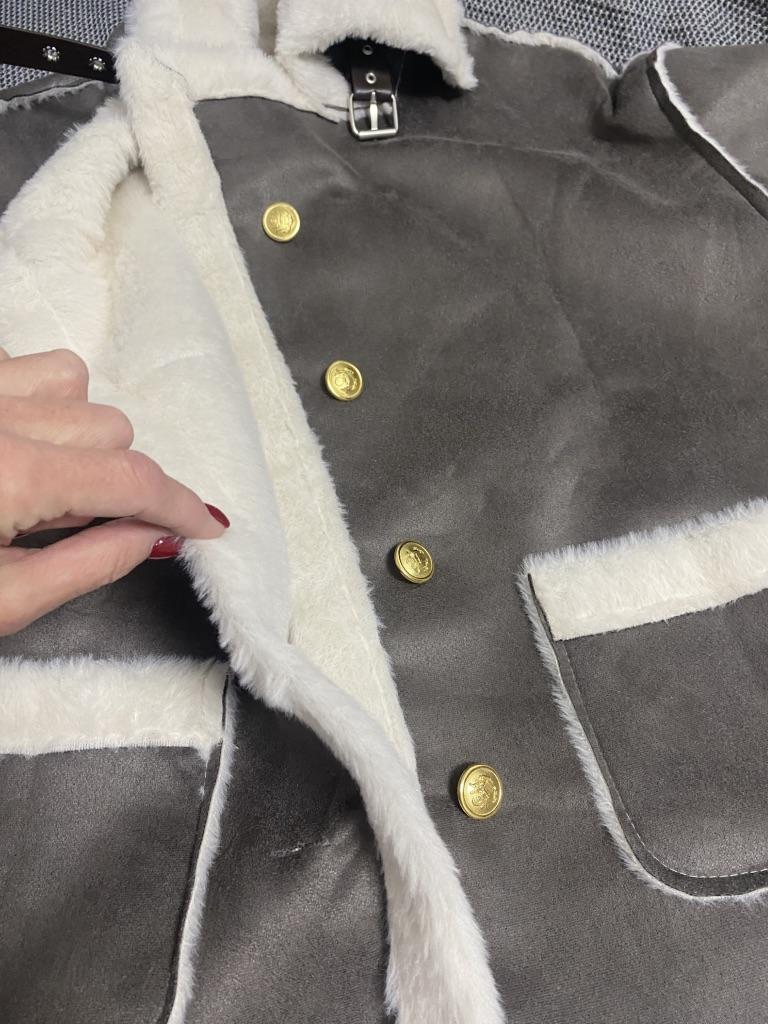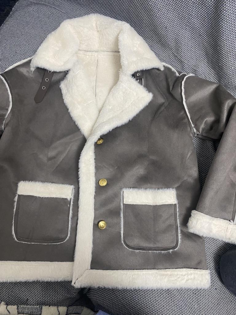 The jacket is cute, fits well, the quality is nice. In the photo it looks thicker and warmer, but in reality the suede is thin and the fur is also thin and smoother, but it's pleasant to wear. I ordered 2 sizes larger, I shouldn't have, order true to size or 1 size up if you want it looser.