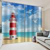 3D Digital Sunset Over Ocean Calm, Darkening Curtain for Living Room, Bedroom, Island, Summertime, 2 Pieces Shading