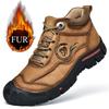 Fashion Winter Outdoor Warm Plush Men's Mountaineering Boots Soft Sole Comfortable Hiking Shoes Ankle Boot Genuine Leather Snow Boots
