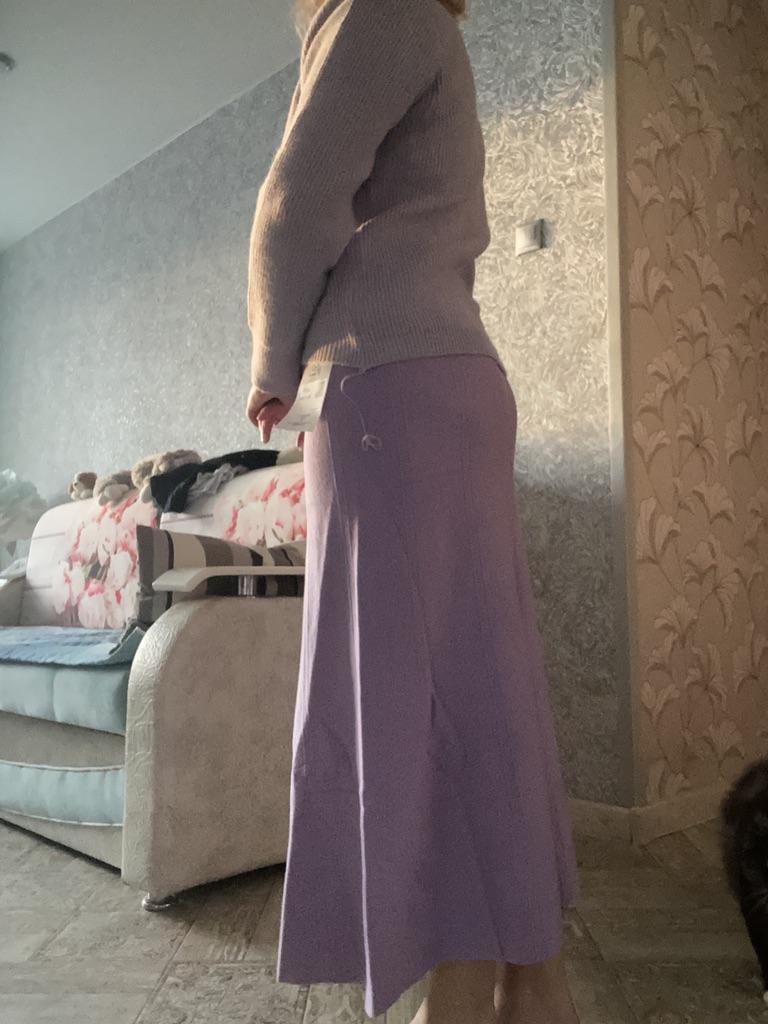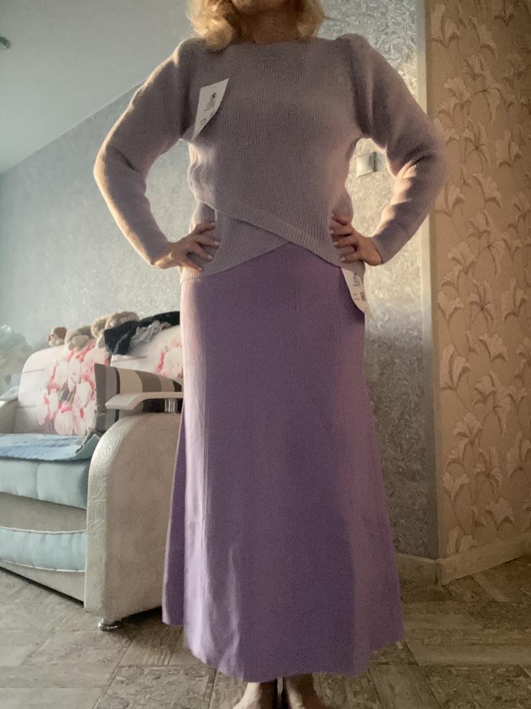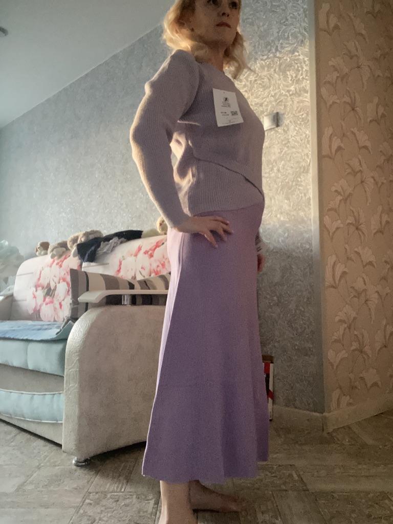 The suit is not bad, but I wouldn't recommend it for women with a fuller figure. I wear size 50. The skirt clung to every fold, doesn't look good, it will be good for slim figures. And pay attention, the tone of the skirt and the blouse is different.