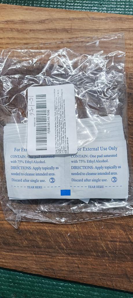 I wouldn't call it an alcohol wipe. It's an alcohol strip, about 2x5 cm in size, and transparent. You can wipe about 5 square centimeters of something with it 🤦🏻