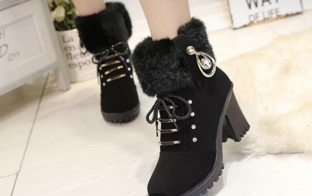 Fashion Winter High Heel Boots Warm Plush Square Heels Winter Shoes Women's Boots Ladies Fashion Brand Ankle Snow Boots 2024