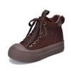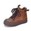 Johnature Versatile Plush Warm Short Boots Genuine Leather Round Toe Casual Women's Flat Platform Shoes