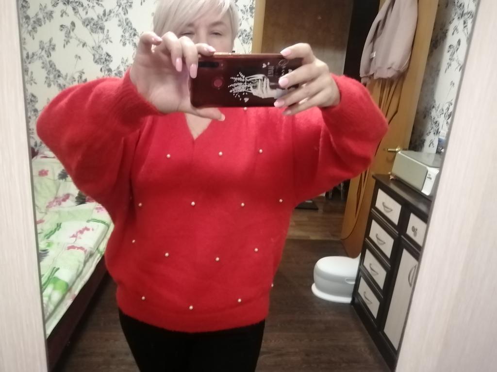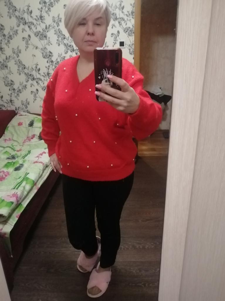 Autumn And Winter V-neck Beaded Solid Color Pullover Sweater Women's Tops