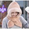 Women Winter Hood Thick Plush Scarf Hat Set Outdoor Ski Windproof Warm Headgear Solid Color Fluffy Fur Female Earmuffs Cap